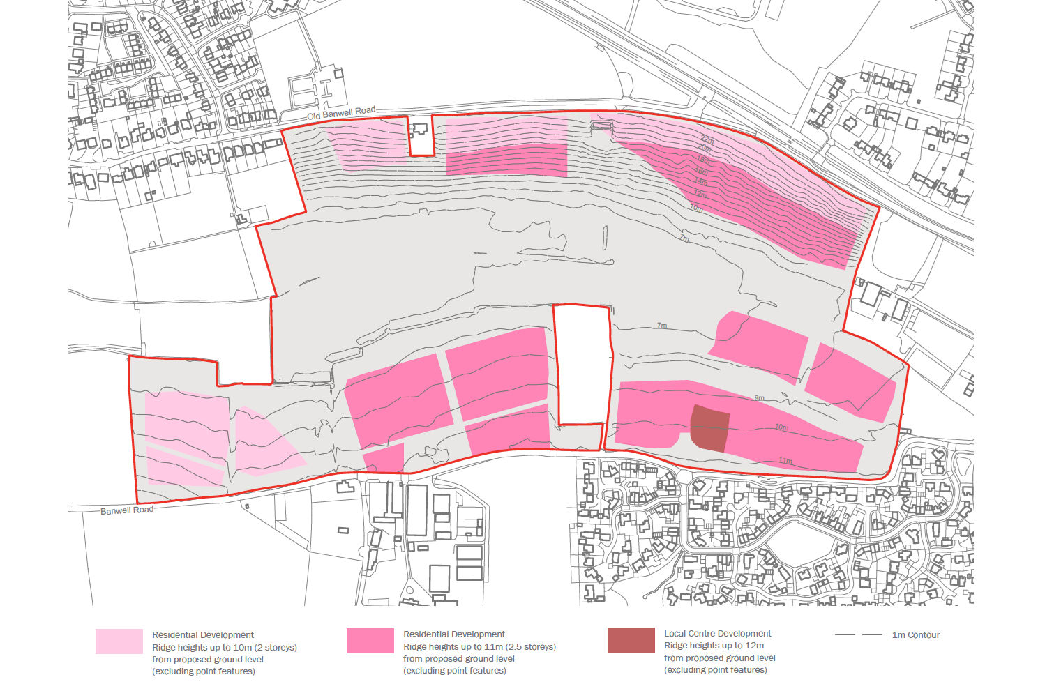 A Height and Scale Plan has also been submitted with the planning application, setting out the maximum ridge heights of buildings in specific parts of the developable area.