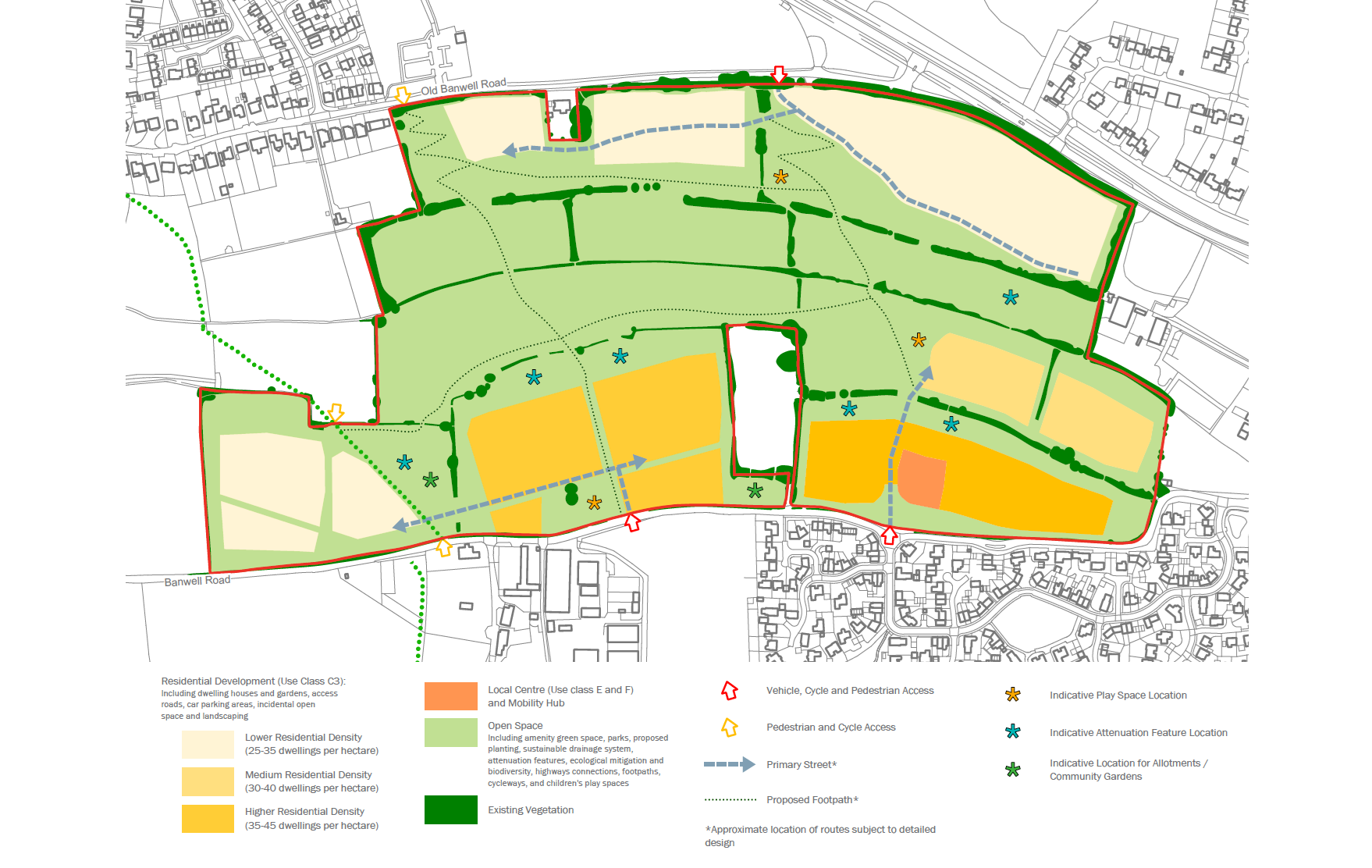 The following is our submitted Land Use Plan for the land south of Old Banwell Road, Locking and the land north of Banwell Road, Elborough, showing how these two developments would be delivered whilst protecting the land in-between for biodiversity enhancement and public open space.